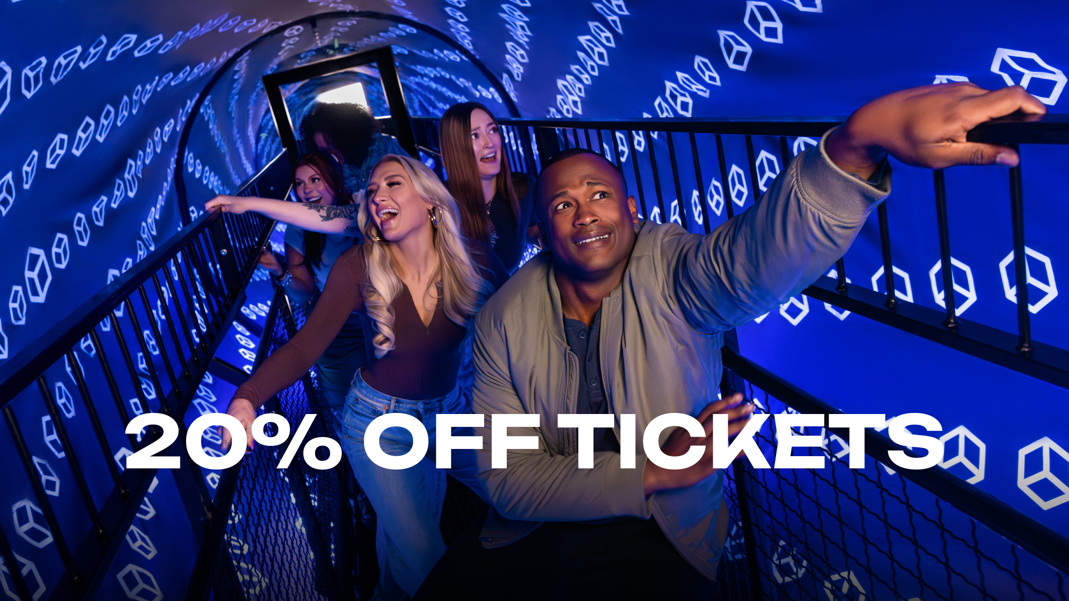 Discover our interactive exhibits and unreal photo ops that will challenge your senses and twist your perception. Defy gravity, grow or shrink in seconds, walk through a spinning vortex, swap faces with a friend – and see reality in a whole new way!